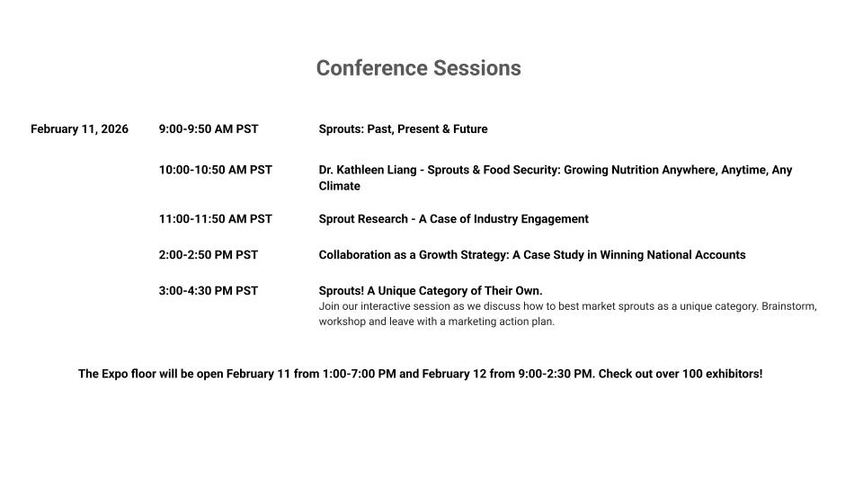 Join us as we gather with sprout and microgreen growers, industry partners and network with the greater indoor agriculture industry.
