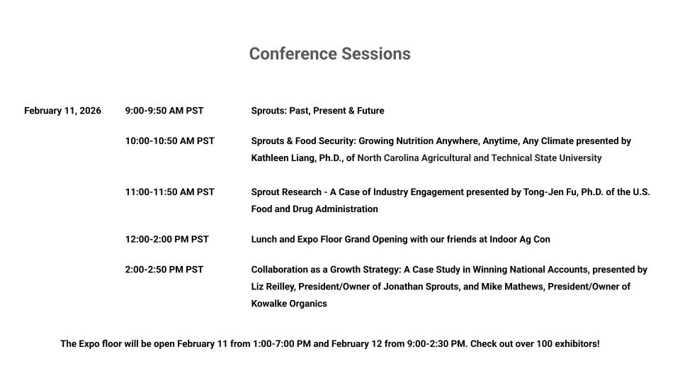 Join us as we gather with sprout and microgreen growers, industry partners and network with the greater indoor agriculture industry.